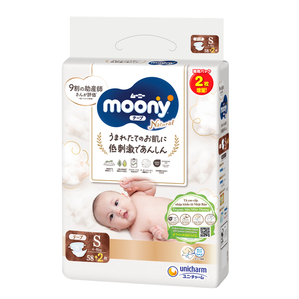 Tã Dán Moony Natural S58+2 (4 – 8kg)